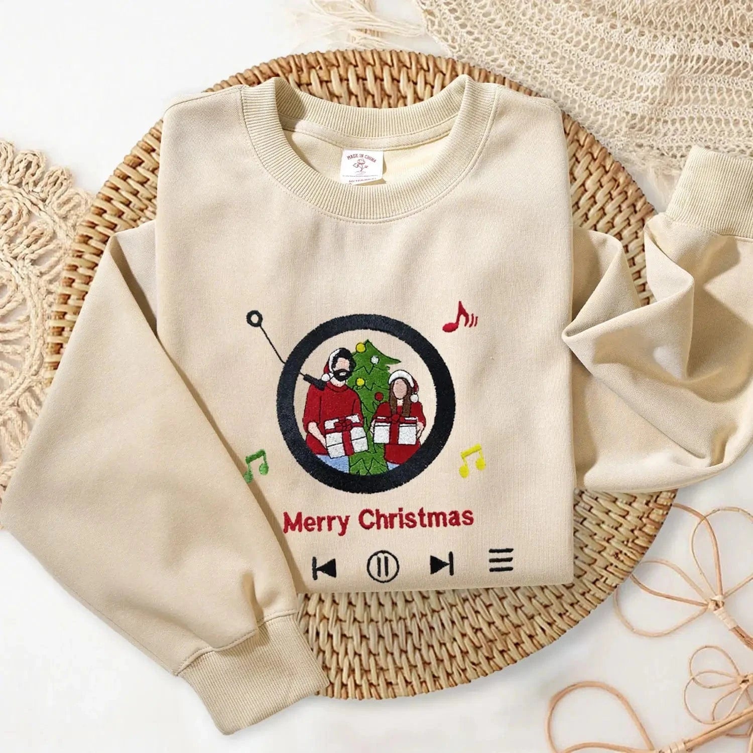 Mystichot Custom Embroidered Sweatshirt Portrait Music Player Couple Family Gift | 2025 New Arrivals