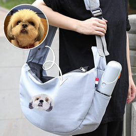 Personalised Grey dog Sling Carrier for small dog image - Custom embroidered pet sling Carrier - Custom hands free Doogie Sling chest bag