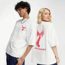 New Arrivals Summer Thermochromic Effect Phoenix Rebirth Print Pure Cotton Loose Crew Neck Couple Tee