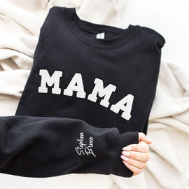 Personalized MAMA Embroidery T-Shirt/Sweatshirt/Hoodie - Multiple Font Options & Custom Cuff Text Available!