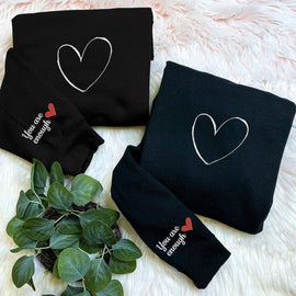 Embroidered Heart Line Couples T-shirt/Sweatshirt/Hoodie - Perfect Gift for Lovers! Soft, Stylish, and Comfortable Apparel for Your Next Casual Outing"