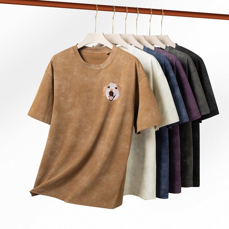 The Pet-embroidered Distressed T-shirt is truly a remarkable piece. It features delicate pet embroidery that showcases the adorable likeness of your beloved pets, almost as if they are right there with you. The distressed finish gives it a vintage and laid-back allure, endowing it with a distinctive style. It's not merely a garment; it's a vessel carrying your affection and individuality. When you put it on during summer, you'll experience both comfort and trendiness, and it's sure to draw countless gazes. It's a perfect blend of artistry and fashion, allowing you to express your love for pets and unique sense of style simultaneously.